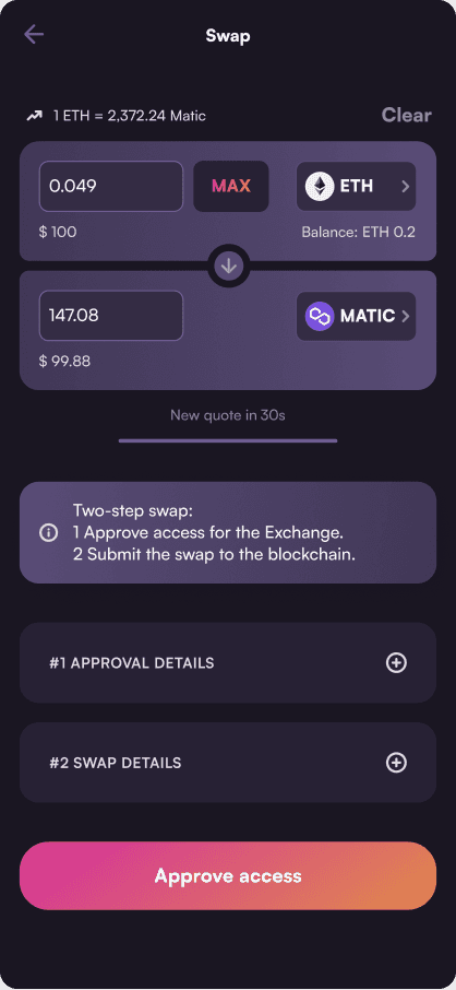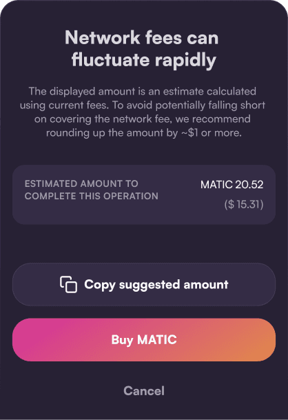 Added progressive disclosures, fee previews, and confirmation states to increase user control and transparency.