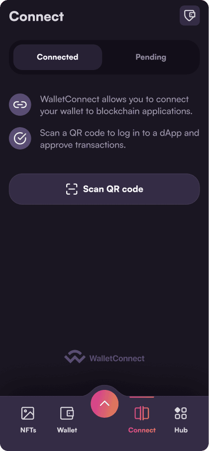 Designed WalletConnect onboarding and empty states for first-time users, clarifying purpose and usage steps.