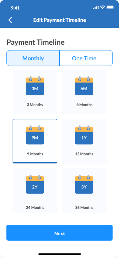 Choose a payback period between 3 to 36 months.
